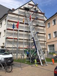 Der Abschluss der Weltbaustelle Bonn wird als Straßenfest gefeiert. Um 14 Uhr eröffnet dies die Bezirksbürgermeisterin Brigitta Poppe-Reiners mit der Präsentation des Wandgemäldes der beiden Künstler, Adolfo Torrico, Santa Cruz, Bolivien, und Anthony DiPaola, Bonn, am KULT41. – In den Fotos ist die eingerüstete Hauswand zu sehen, die ab dem 14. Juni bemalt wurde, ein Zwischenstand vom 15. Juni und die bemalte Hauswand bei der Abschlussfeier. – Anschließend findet ein Markt der Möglichkeiten mit vielen Bonner Initiativen und Vereinen im Innenhof des KULT41 und davor statt. Zwischen 15 Uhr und 16 Uhr wird der Weltmusiker Melchi aus Kamerun die Gäste unterhalten. Und zum Schluss, ab 19 Uhr im Künstlerforum, veranstaltet das Netzwerk Politikatelier ein Culture Slam mit Mitgliedern der Gruppe "Collage mit Courage“ des kommunalen Integrationszentrums Bonn. Diese stellen ihre persönlichen Sichtweisen auf die nachhaltigen Entwicklungsziele der UN vor. Weitere Informationen unter: abschluss-der-weltbaustelle.
